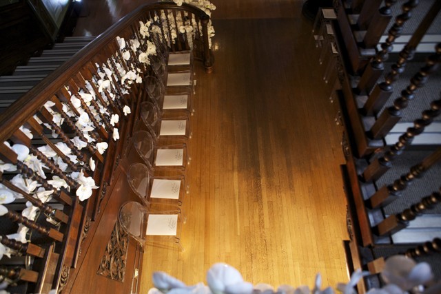 | The boys from Wildabout threading orchids down Fetcham’s staircase – next time Penny we’ll find the budget for the white carpet you so desired xxx |