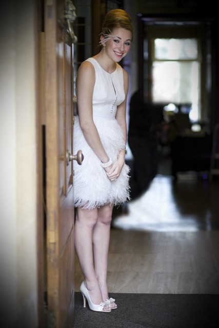 | The beautiful Amy Clark with additional boa of fresh flowes by Bloomingayles |