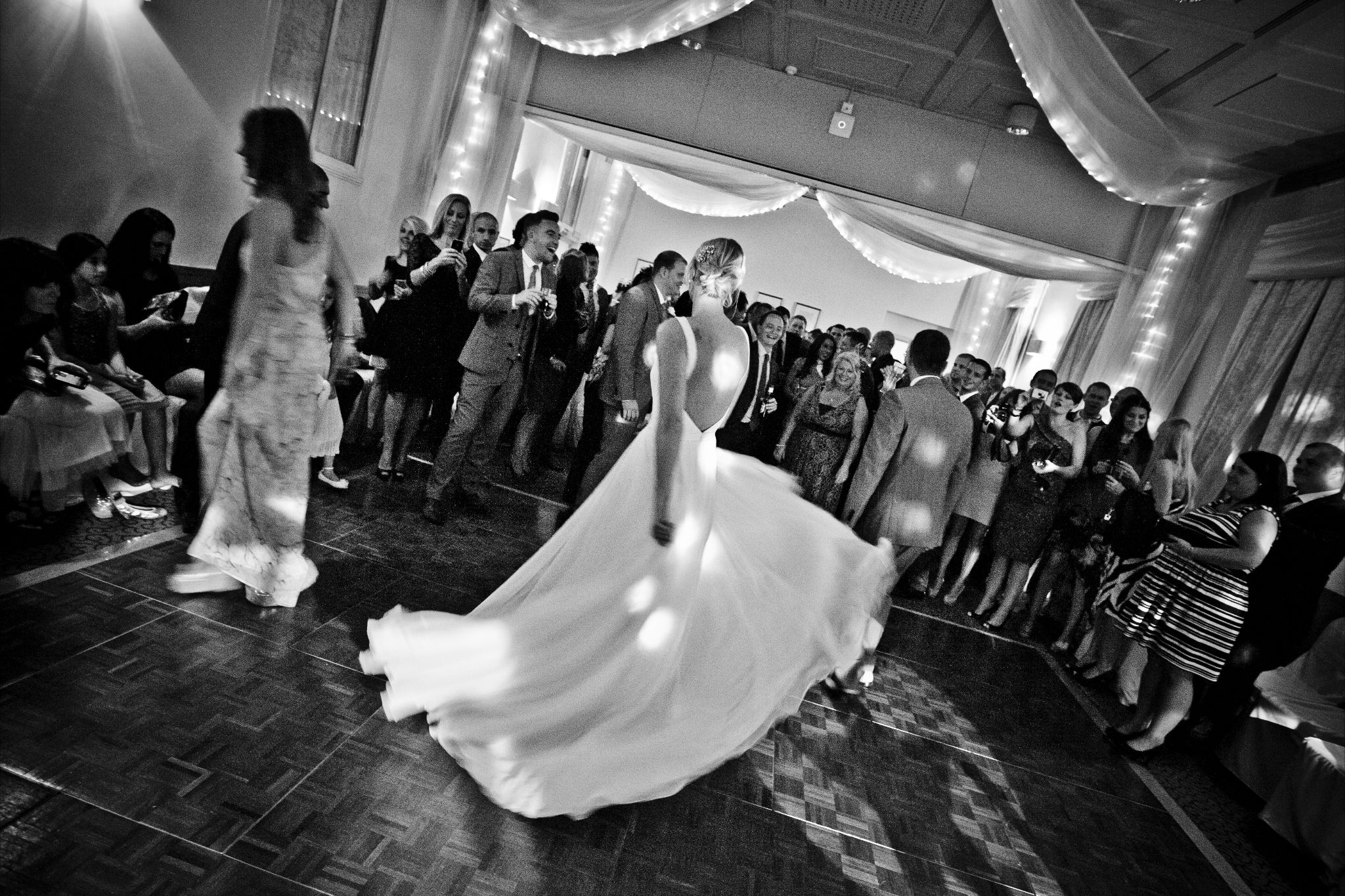 I absolutely love the selection of photos that Jackie has sent me. I love the transition from the nervous, over the shoulder glance to the exuberant swish on the dance floor.