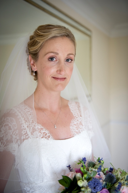 Laura looked beautiful in the delicate chantilly lace of Maiden from the first moment she slipped into it. It is a delicate dress perfect for a willowy English rose. Through the months from ordering the dress, Laura’s stresses gently ebbed and here she is the very epitome of a relaxed and beautiful bride. The setting of the ancient and mystical St Martha’s in the hills above Guildford is glorious and the sun shone despite dire predictions – as the saying goes ‘somebody upstairs’ was definitely looking out for her.